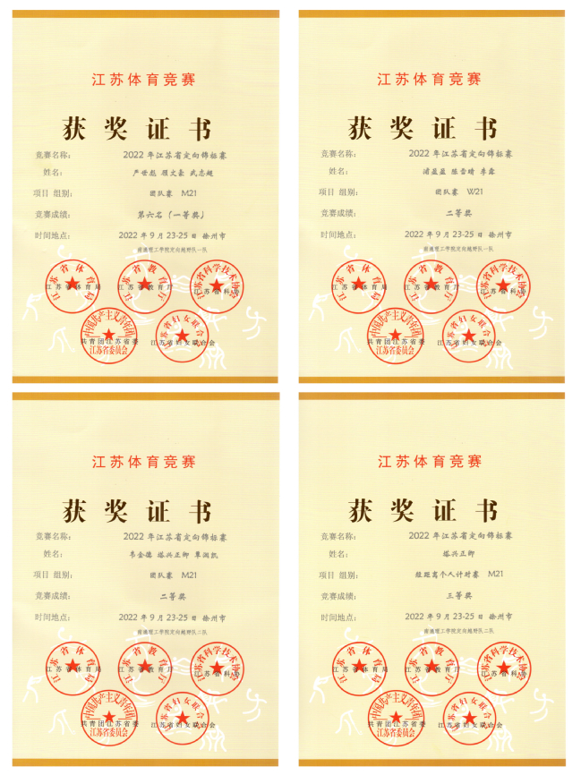 9月23日-25日江苏省定向锦标赛在徐州市举行。本次比赛中我校定向越野俱乐部12位队员与来自南京大学、中国矿业大学、江苏科技大学、江苏师范大学、南京审计大学、南京工程学院等42支代表队近600名选手同台竞技,在徐州月半弯、闫山等比赛场地参加了包括团队赛、短距离赛和百米定向在内的三项赛事。我校队员们最终取得了1个一等奖,2个二等奖和16个三等奖的好成绩,展现了我校学生在该项目上的实力和水平,为学校争得了荣誉。