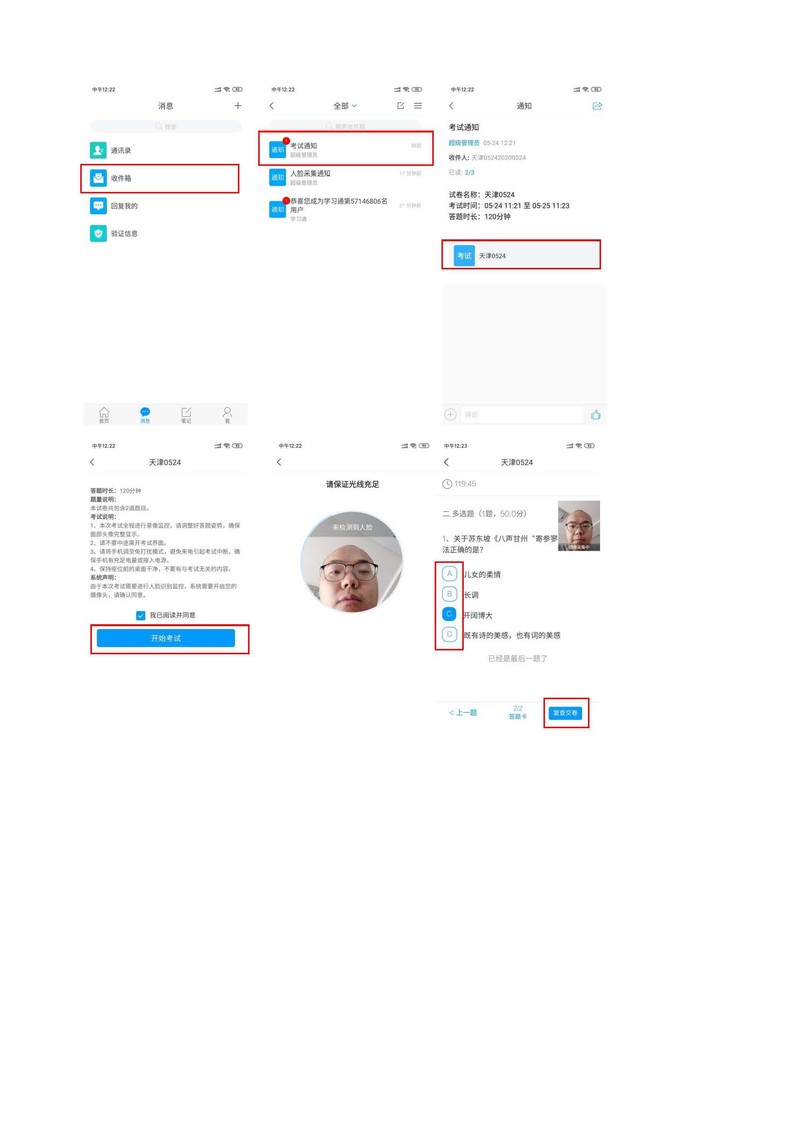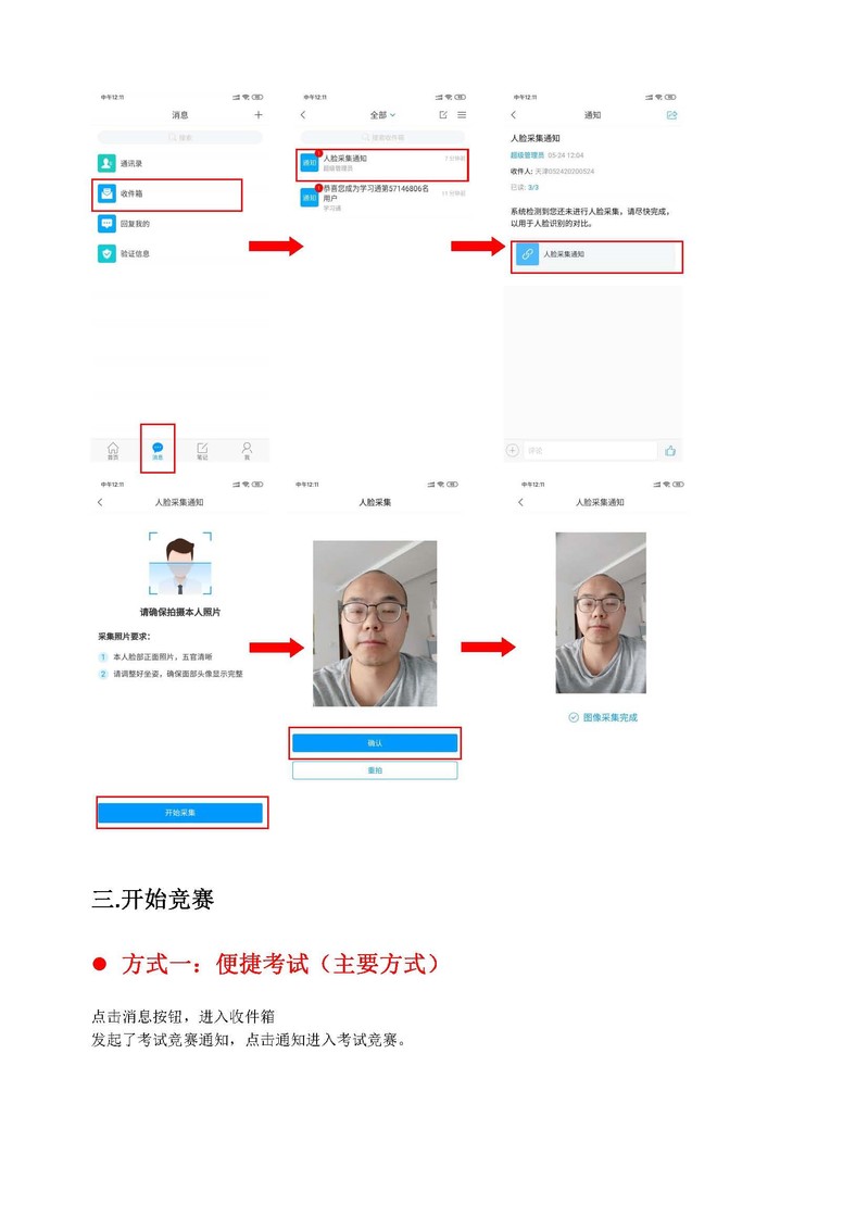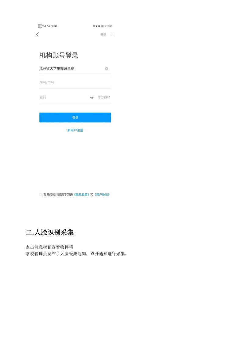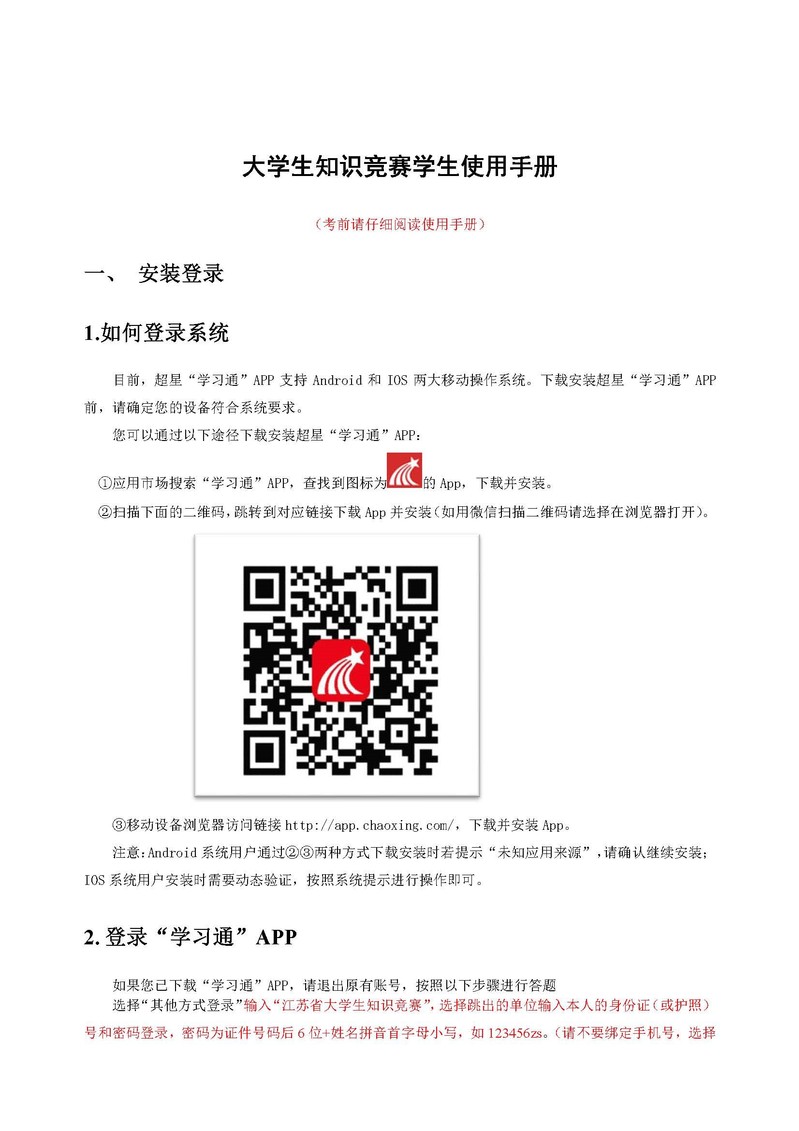 请参赛学生在学校提交基础信息后,下载并登录“学习通”APP,于12月6日前完成人脸识别,激活参赛账户,具体操作参照《大学生知识竞赛学生使用手册》(见附件)。已有“学习通”APP账户与本次竞赛不兼容,参赛学生仍需按照大赛指定账号密码重新登录。