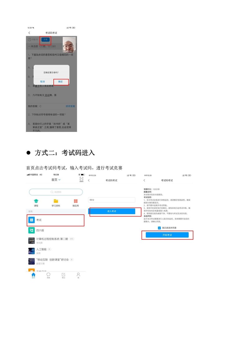 为了让学生熟悉操作流程、提前感受竞赛的节奏,组委会决定于12月6日20:00—22:00开通模拟比赛。模拟比赛阶段学生无需线下集中,学生可自行登录“学习通”APP参加模拟考试。模拟只有一次机会,请学生在规定时间内参加。模拟题量共40题,时长20分钟。操作过程参照《大学生知识竞赛学生使用手册》(见附件)